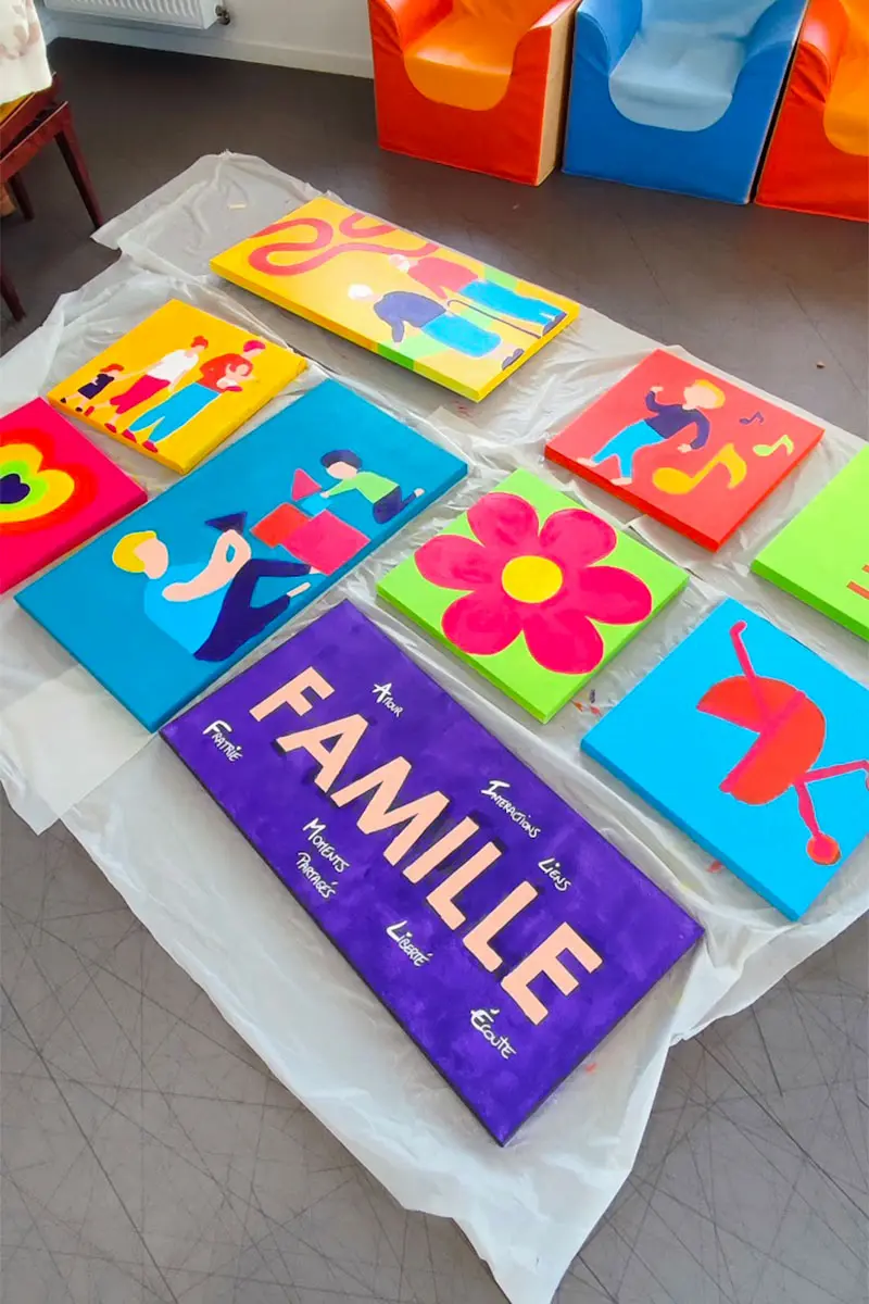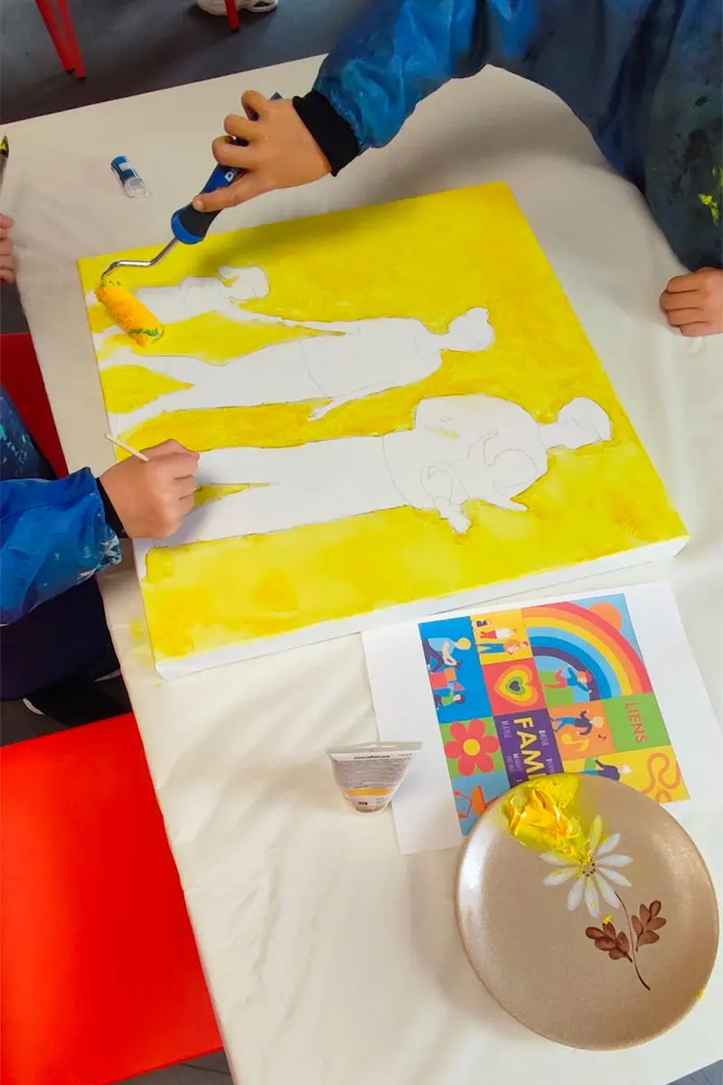 Le projet met l’accent sur la participation active des jeunes et des familles. Cet atelier artistique participatif est organisé autour de différents ateliers créatif : les jeunes pensent et créent l’œuvre en amont de l’événement. En effet, l’œuvre est conçue comme un puzzle pour ensuite être assemblée le jour de l’événement avec les familles en symbole de collaboration et de lien.